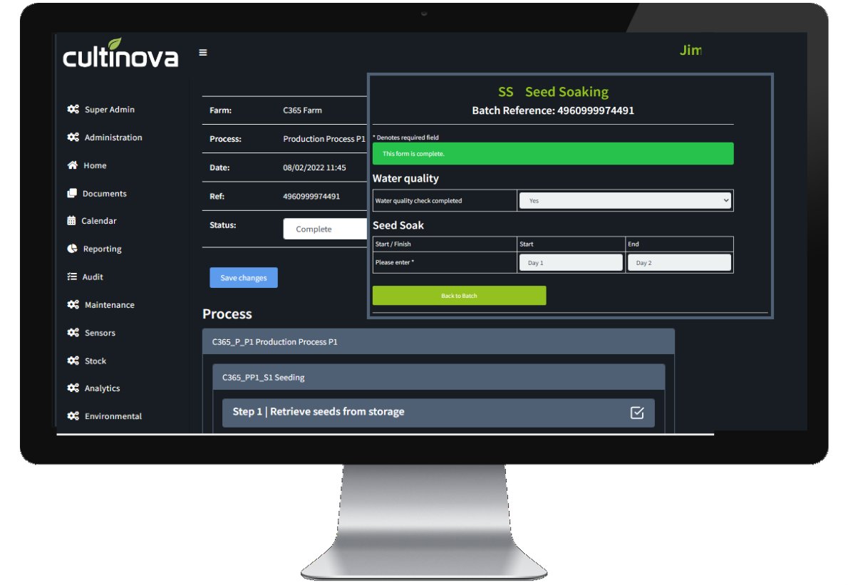 Once gathered, data is pushed securely to the cloud, where it is used by Cultinova365 for digitised process management, analytics, quality control, compliance and auditing.