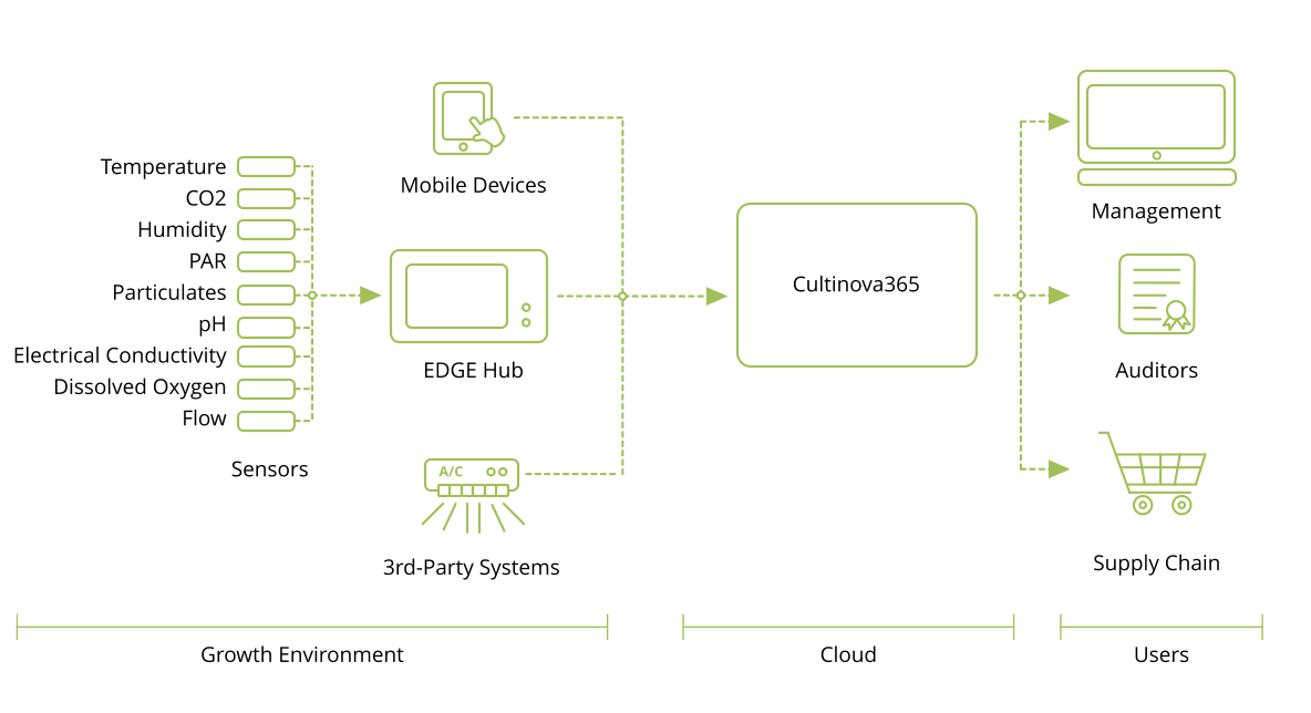 CultinovaEDGE enables the use of a wide range of sensors to generate precise records of key parameters within growth environments.